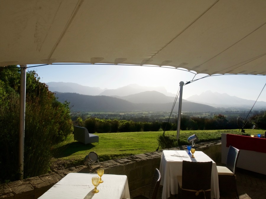 OLYMPUS DIGITAL CAMERA Blick von unserem 1. Tisch aussen zum Sundownern. Zum essen ging es dann nah innen Hinter eine große Glaswand.